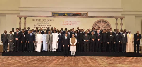 2018年3月11日,印度總理莫迪、法國總統(tǒng)馬克龍領(lǐng)銜與30多位國家元首和政府首腦以及近百個國家和組織的代表團齊聚印度首都德里召開太陽能峰會,正式宣布一個全新的政府間國際組織——“國際太陽能聯(lián)盟”(International Solar Alliance, 簡稱ISA)正式啟動。該組織的目標是為貧窮發(fā)展中國家籌措10000億美元以上的資金,并通過技術(shù)分享和能力建設(shè),力爭2030年前在這些國家新增1000吉瓦的太陽能光伏裝機。