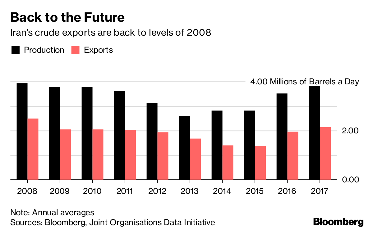 2012年,由于世界大國(guó)對(duì)伊朗核計(jì)劃的制裁加劇,原油產(chǎn)量和出口下降。在2016年限制放松后,它們反彈。