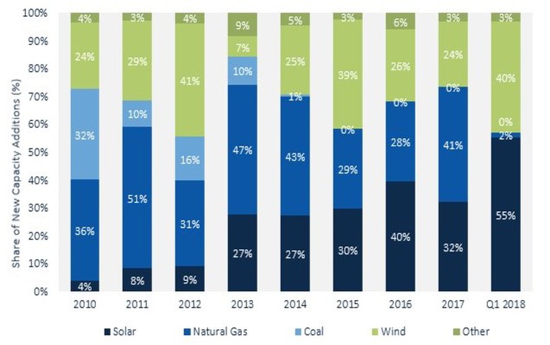 但是,根據(jù)GTM Research和美國太陽能行業(yè)協(xié)會最新的美國太陽能市場洞察報告,美國太陽能行業(yè)第一季度新增加價值2.5吉瓦,年增長13%,連續(xù)第十個季度超過2吉瓦。