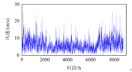 式中:PW為風(fēng)力發(fā)電機(jī)實(shí)際輸出功率;Pn為風(fēng)機(jī)離散功率曲線上給定點(diǎn)n的功率,共有N個(gè)點(diǎn);v為平均風(fēng)速;ln( )為插值函數(shù)。