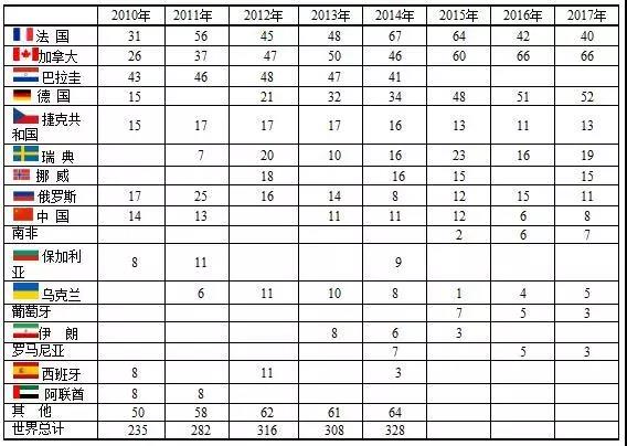 2018年7月主要國(guó)家核反應(yīng)堆及鈾需求