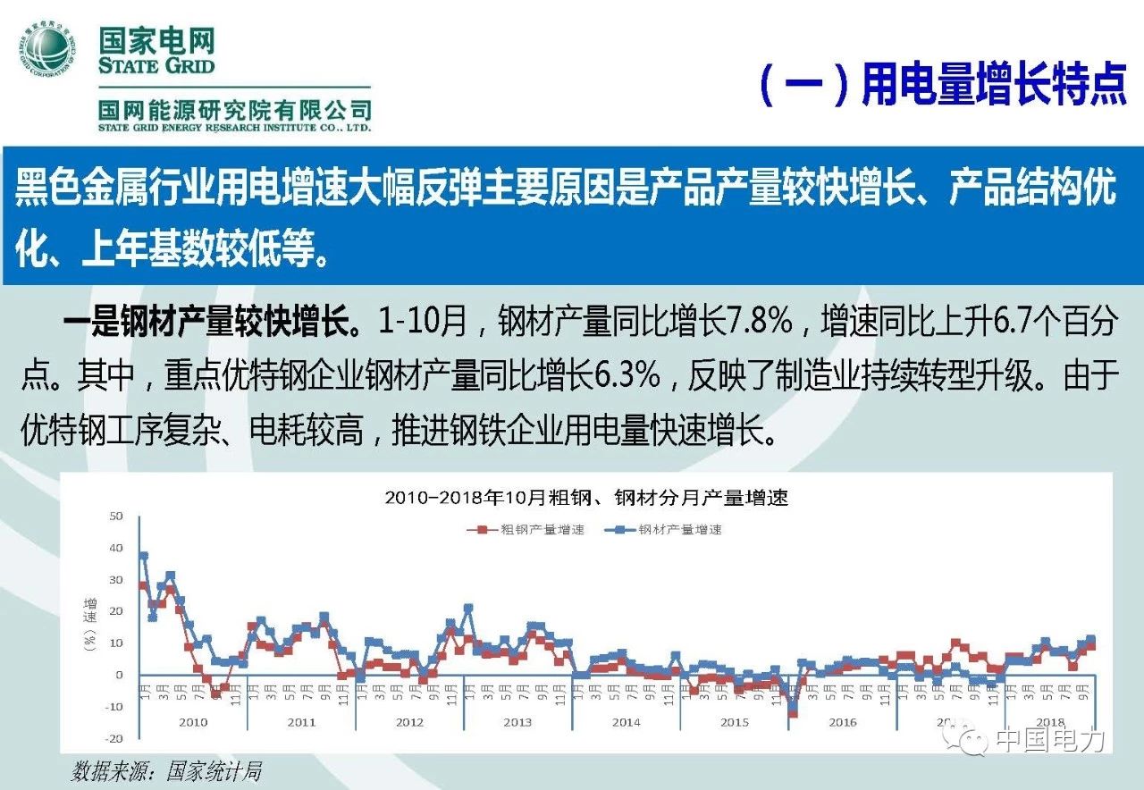 1978-2017年,我國GDP年均增長9.5%,全社會用電量年均增長8.7%,電力彈性系數(shù)0.91。受結(jié)構(gòu)調(diào)整、電能替代、氣溫等因素影響,短期經(jīng)濟與用電量增速可能出現(xiàn)脫鉤,表現(xiàn)為增速變化方向相反、增速變化同向但差距很大等,如2008、2009、2010、2012、2015、2016年以及2018年。報告主要分4個部分:1.經(jīng)濟與用電量增長關(guān)系分析;2.2018年以來用電量增長原因;3.2019年經(jīng)濟與電力需求研判;4.主要結(jié)論。