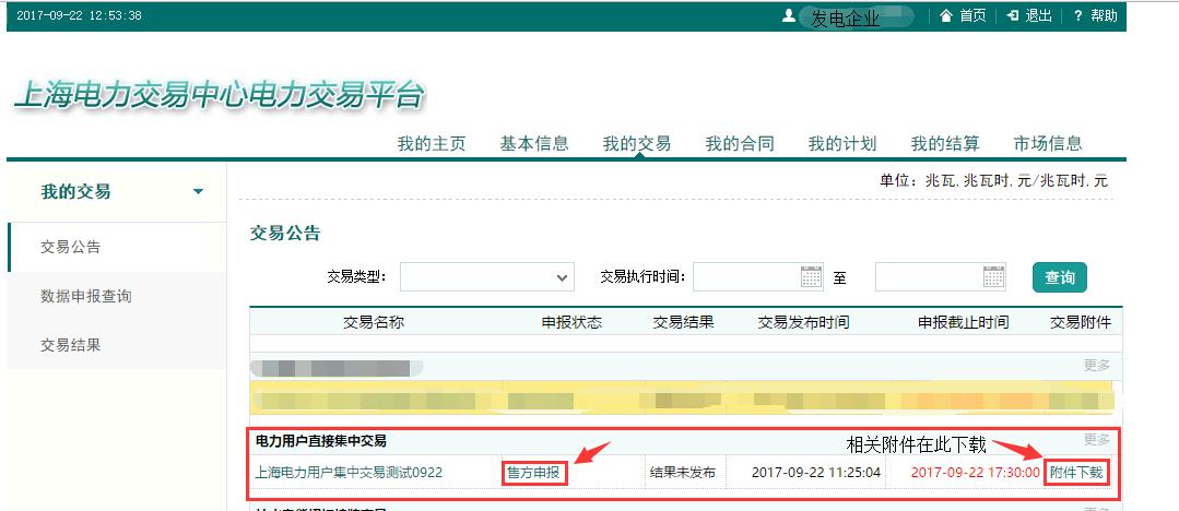 5、等待交易中心出交易結(jié)果,交易結(jié)果發(fā)布時(shí)間在“交易公告”中查看,交易結(jié)果在申報(bào)的按鈕會變成“交易結(jié)果”按鈕,點(diǎn)擊進(jìn)入就可以看到本次交易的結(jié)果,“交易結(jié)果公告”在序列后面的“附件下載”里下載附件。