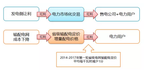 存量紅利主要圍繞兩個方面:一是發(fā)電側(cè)的讓利,主要是通過電力市場化的交易,特別是電力批發(fā)市場的建設(shè),把紅利釋放給售電公司和電力用戶。二是輸配電網(wǎng)成本的下降,這個主要是通過省級輸配電定價以及通過增量配電網(wǎng)配電價格的清晰化,使電網(wǎng)的過網(wǎng)費成本逐步清晰,不合理的成本逐步被剔除,把過網(wǎng)的紅利直接讓利給電力用戶。