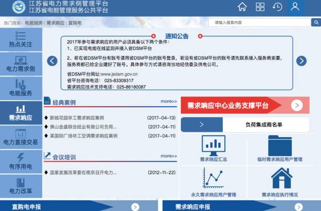 2014年以來,除唐山市外,北京、上海、佛山三市和江蘇省已成功實施了幾次需求側響應項目,基本是每年夏季實施一兩次。其中江蘇省需求側響應從實施范圍、響應容量來看均處于國內領先水平。2017年7月江蘇省經(jīng)信委組織省電力公司對張家港保稅區(qū)、冶金園啟動了實時自動需求響應,在不影響企業(yè)正常生產(chǎn)的前提下,僅用1秒鐘時間即降低了園區(qū)內55.8萬千瓦的電力需求,創(chuàng)下了國際先例。