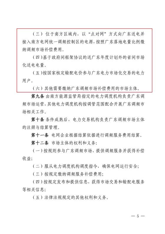 (六)其他需要繳納廣東調(diào)頻市場補償費用的市場主體。