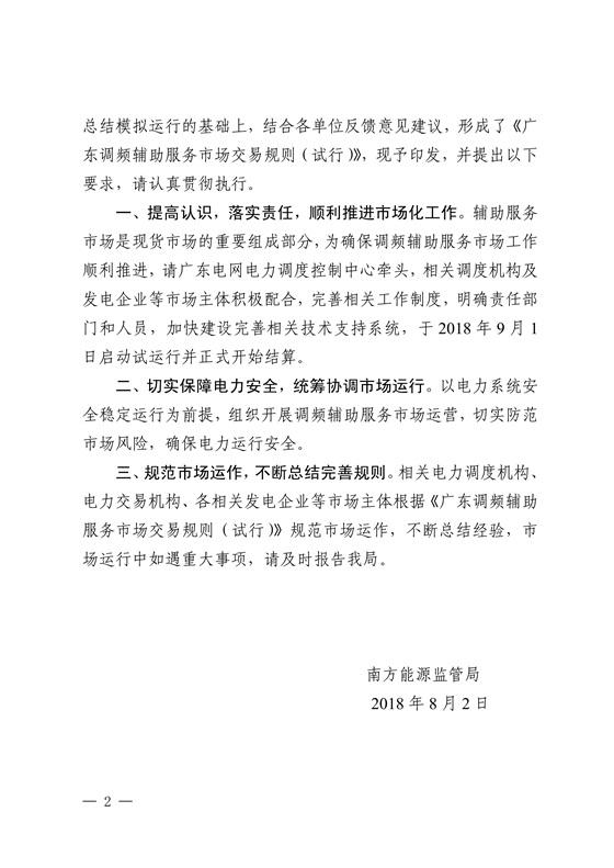 國家能源局南方監(jiān)管局日前印發(fā)了《廣東調(diào)頻輔助服務市場交易規(guī)則(試行)》的通知,將于2018年9月1日正式執(zhí)行。