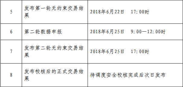 一、 交易方式集中競(jìng)價(jià)交易。交易分兩輪進(jìn)行,每輪交易每個(gè)交易單元最多申報(bào)兩段電價(jià)。
