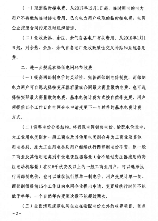 廣西壯族自治區(qū)物價(jià)局日前發(fā)布了《關(guān)于降低一般工商業(yè)電價(jià)有關(guān)事項(xiàng)的通知》,落實(shí)已出臺(tái)的電網(wǎng)清費(fèi)政策,取消臨時(shí)接電費(fèi)。免收余熱、余壓、