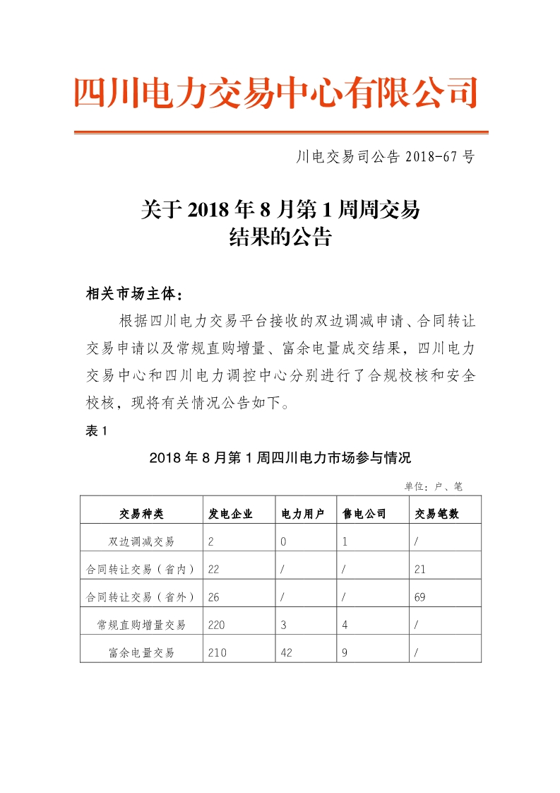 根據(jù)四川電力交易平臺(tái)接收的雙邊調(diào)減申請(qǐng)、合同轉(zhuǎn)讓交易申請(qǐng)以及常規(guī)直購(gòu)增量、富余電量成交結(jié)果,四川電力交易中心和四川電力調(diào)控中心分別進(jìn)行了合規(guī)校核和安全校核,有關(guān)情況詳見附件。
