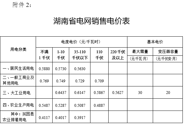 2、湖南省電網(wǎng)銷售電價(jià)表