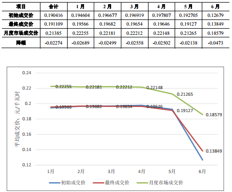 度集中撮合交易平均成交價(jià)作為參考,上下浮動(dòng)一定的比例作為最終的成交價(jià)。2017 年上半年,年度雙邊合同電廠側(cè)初始平均成交價(jià)每千瓦時(shí) 0.19042 元,最終平均成交價(jià)每千瓦時(shí) 0.19111 元,每千瓦時(shí)較初始成交價(jià)上漲 0.00069 元,每千瓦時(shí)較月度市場(chǎng)平均成交價(jià)低0.023 元。