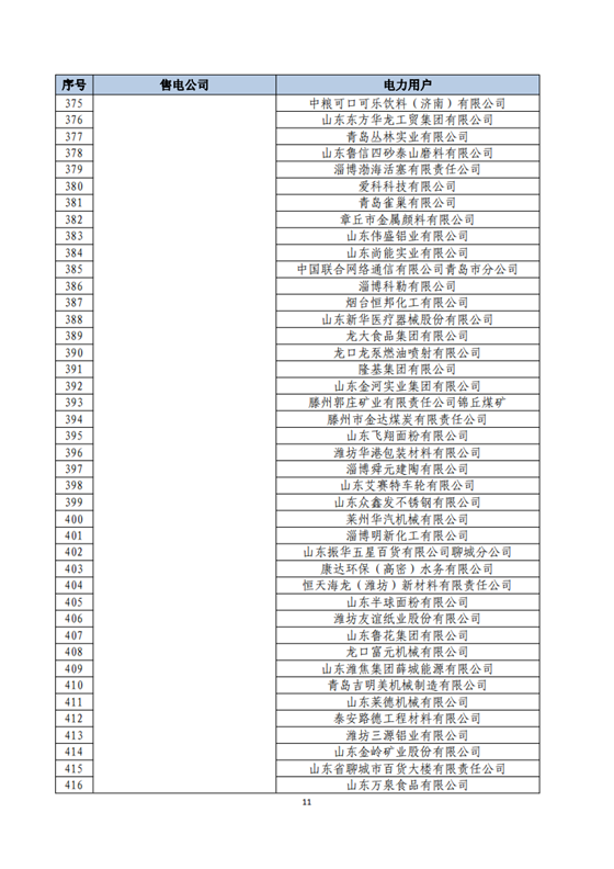 山東2018年省內(nèi)電力交易用戶與售電公司代理關(guān)系及自主參與直接交易用戶名單