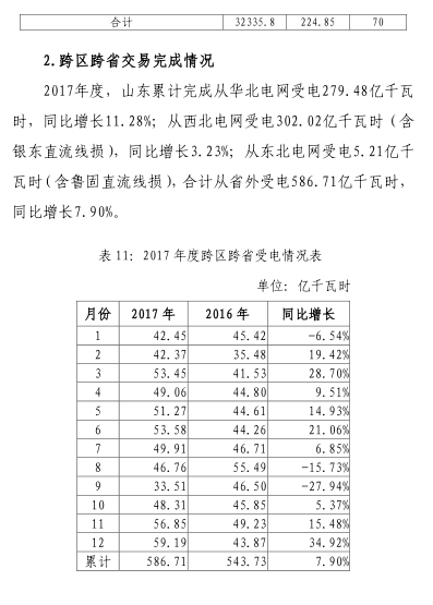 山東電網(wǎng)2017年度暨四季度電力市場交易信息報告:全社會用電量完成5430.16億千瓦時