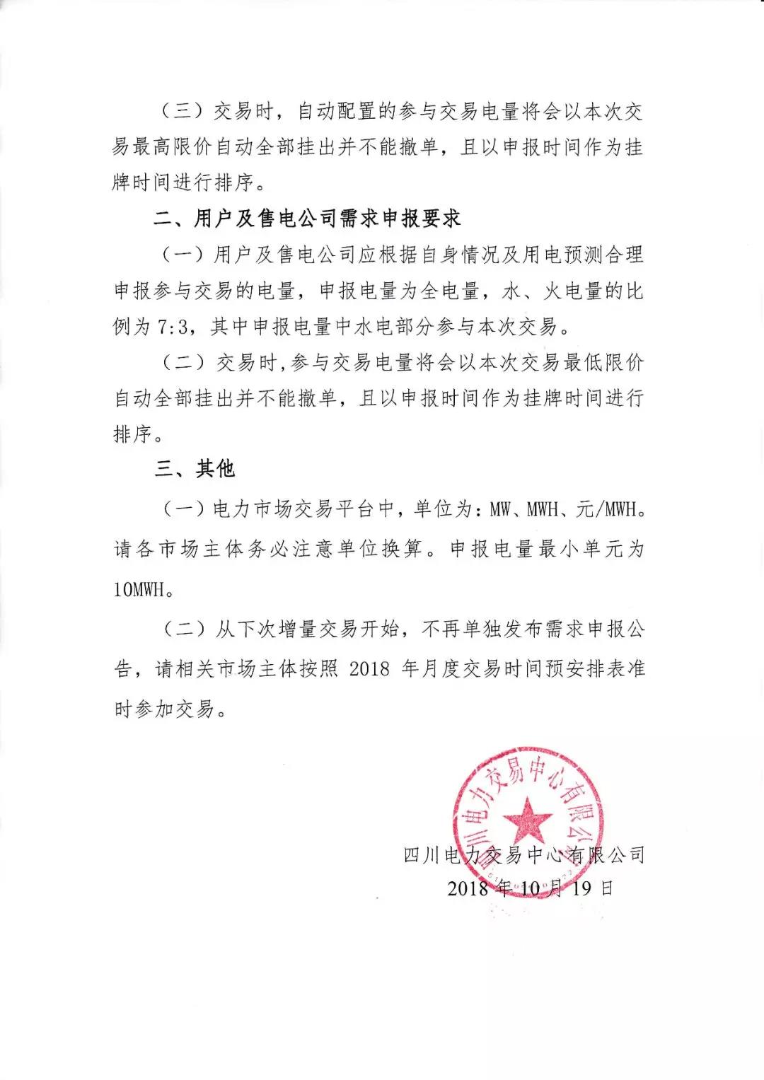公告 | 四川關(guān)于開(kāi)展2018年11月第1周直接交易需求申報(bào)的公告