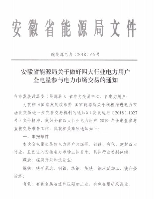 好消息!安徽放開四大行業(yè)電力用戶全電量參與電力市場交易 11月10日注冊截止