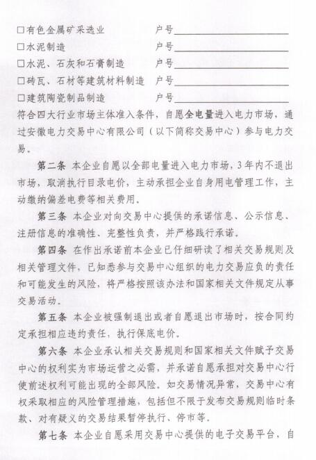 四大行業(yè)用戶可自愿選擇是否參與全電量交易市場,選擇參與全電量交易市場后,原則上3年內(nèi)不得退出全電量交易市場。自愿或強(qiáng)制退出的,原則上3年內(nèi)不得進(jìn)入電力市場,并執(zhí)行保底供電價(jià)格。