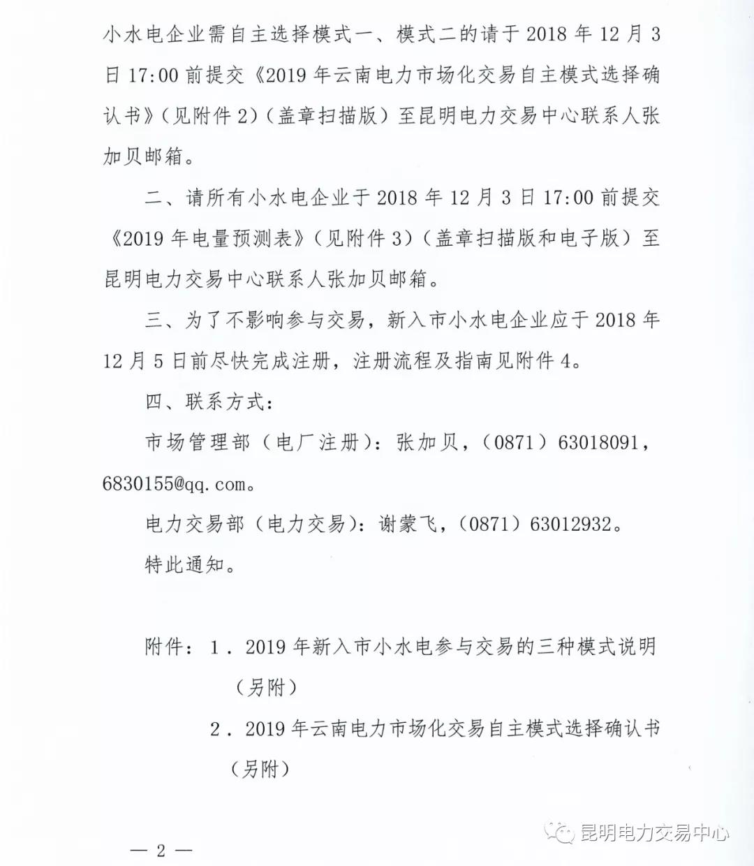 云南關(guān)于2019年新入市小水電企業(yè)注冊(cè)并選擇交易模式的通知