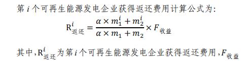 第六十五條 可再生能源發(fā)電企業(yè)未參與綠色電力交易的超發(fā)電量在年終統(tǒng)一進(jìn)行清算,此部分電量結(jié)算造成的差額收益主要返還至所有參與綠色電力交易的可再生能源發(fā)電企業(yè),剩余部分可分配給送出可再生能源的電網(wǎng)企業(yè),用于補(bǔ)償其在可再生能源接網(wǎng)工程的投資。差額收益在可再生能源發(fā)電企業(yè)和電網(wǎng)企業(yè)間的分配比例按年確定。參與綠色電力交易的可再生能源發(fā)電企業(yè)獲得的返還費(fèi)用按照如下公式計算。