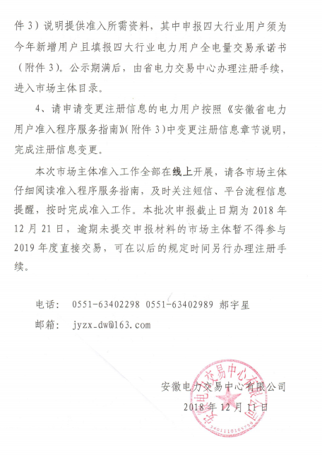本批次申報(bào)截止日期為2018年12月21日,逾期未提交申報(bào)材料的市場主體暫不得參與2019年度直接交易。