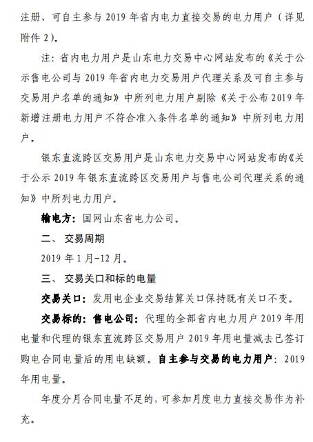 山東省2019年年度電力直接交易(雙邊協(xié)商)12月25日申報(bào)