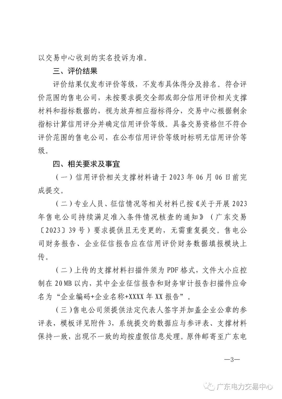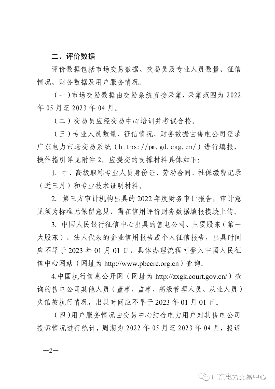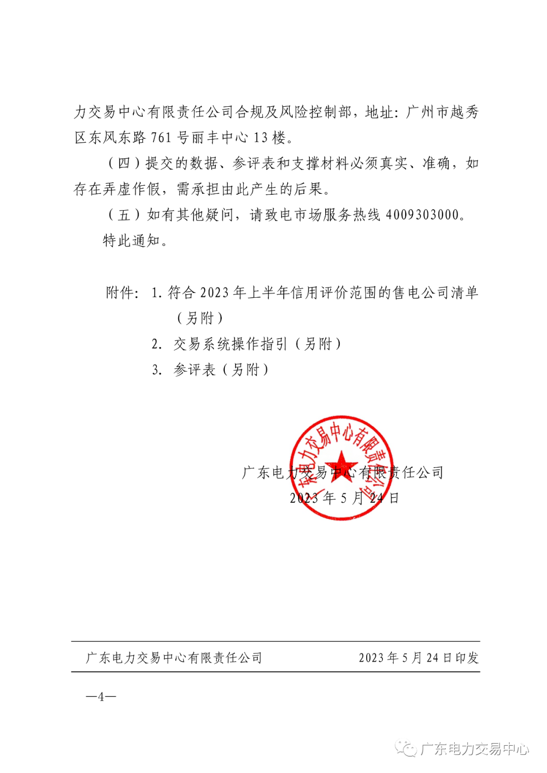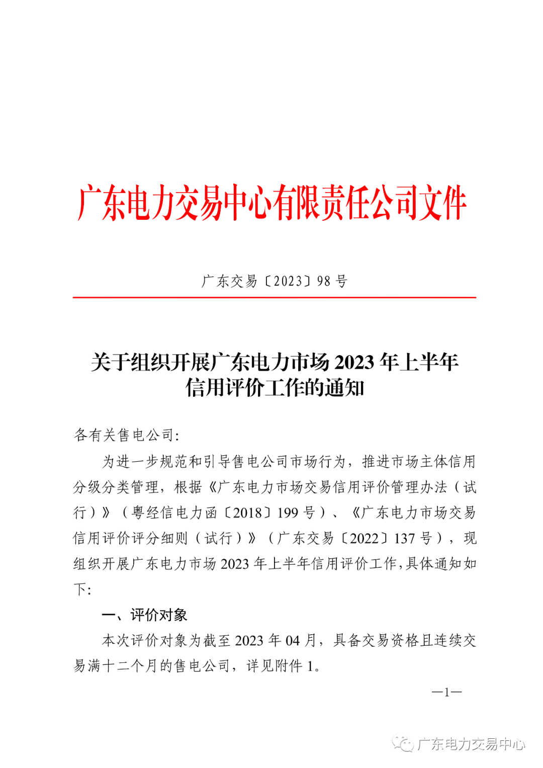 廣東電力交易中心日前發(fā)布關于組織開展廣東電力市場2023年上半年信用評價工作的通知,評價對象為截至2023 年 04 月,具備交易資格且連續(xù)交易滿十二個月的售電公司。詳情如下: