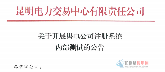 昆明電力交易中心:開展售電公司注冊(cè)系統(tǒng)內(nèi)部測(cè)試的公告