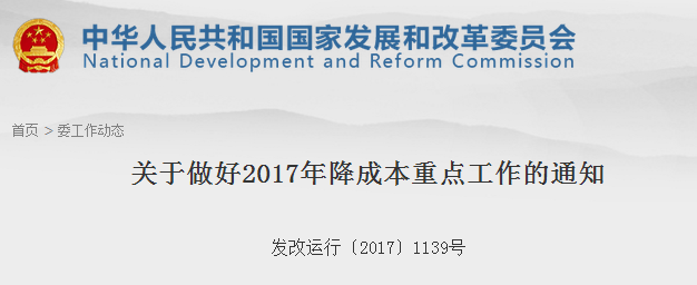 近日國家發(fā)改委發(fā)布了關于做好2017年降成本重點工作的通知。