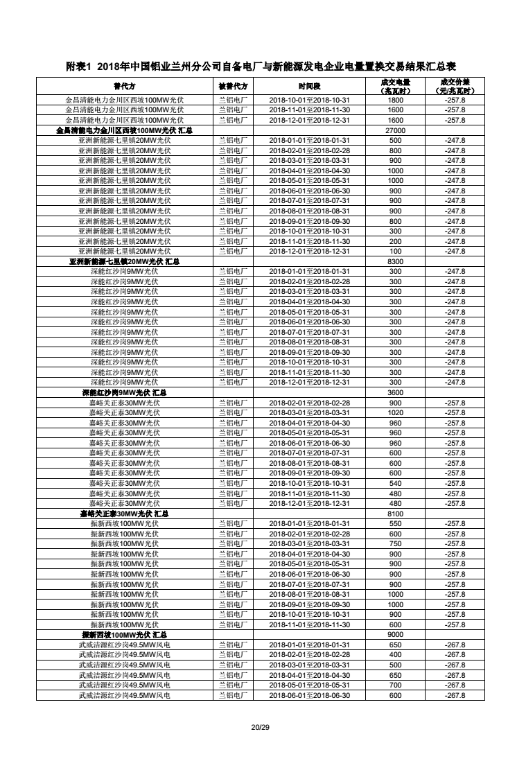 《2018年甘肅蘭鋁、金川集團(tuán)、玉門石油自備電廠與新能源發(fā)電企業(yè)電量置換交易結(jié)果公告(2018年1月23日)》:總成交量24.55億千瓦時(shí)