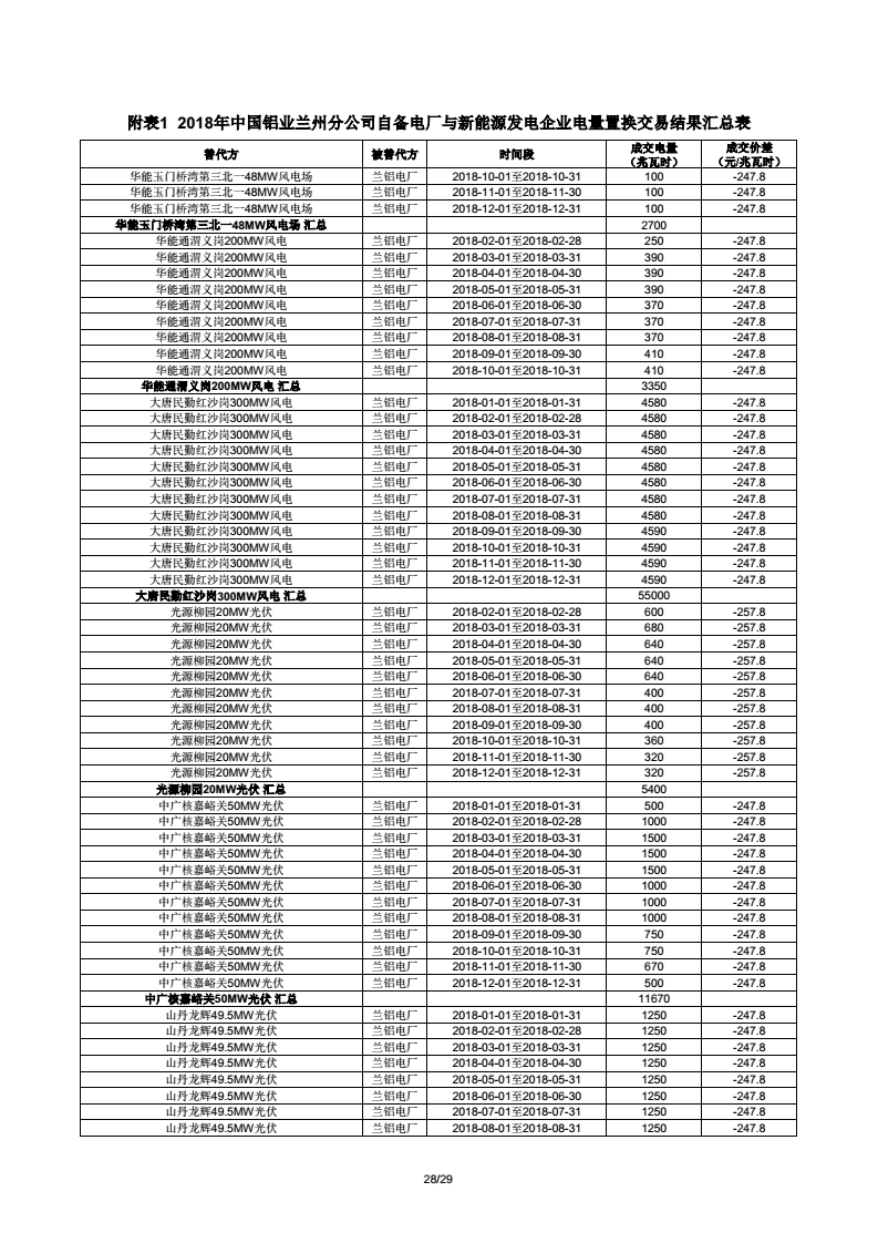《2018年甘肅蘭鋁、金川集團(tuán)、玉門石油自備電廠與新能源發(fā)電企業(yè)電量置換交易結(jié)果公告(2018年1月23日)》:總成交量24.55億千瓦時(shí)