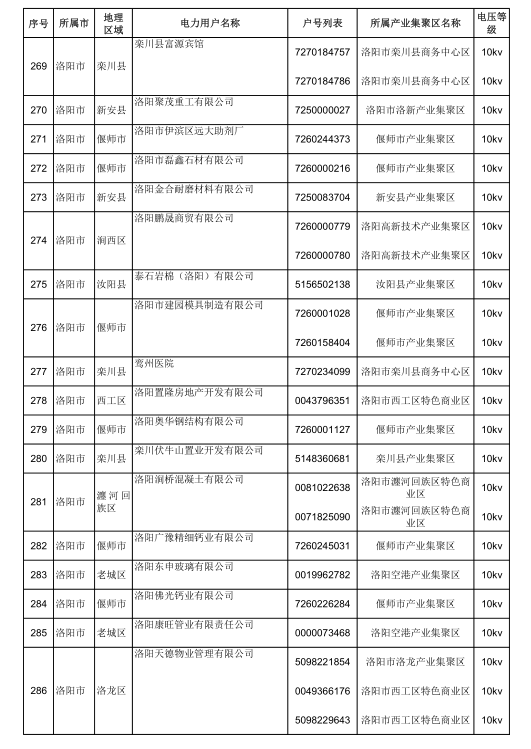 2018年河南省新增942家電力用戶公示名單(第三批)