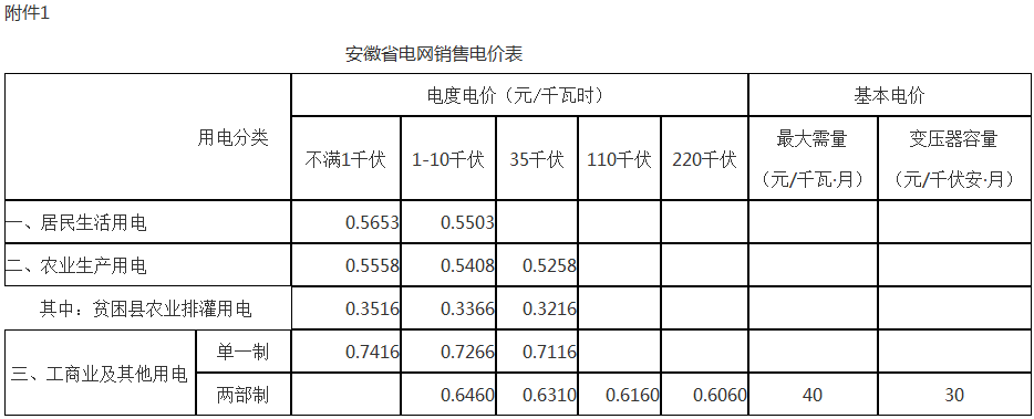附件:1.安徽省電網(wǎng)銷售電價表