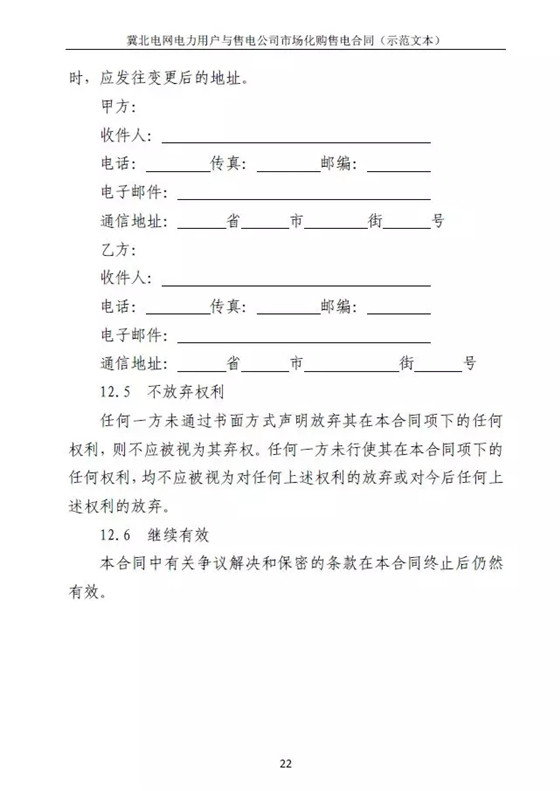冀北電網(wǎng)售電公司與電力用戶購售電合同示范文本