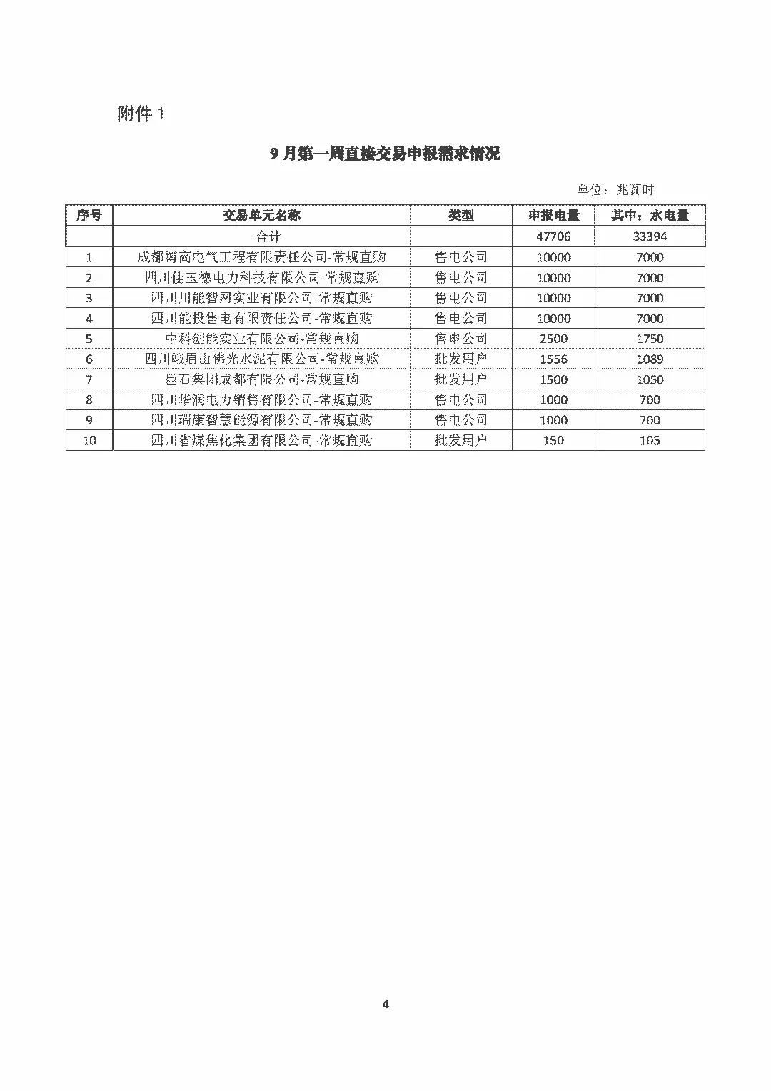 公告 | 四川關(guān)于開展2018年9月第一周直接交易的公告