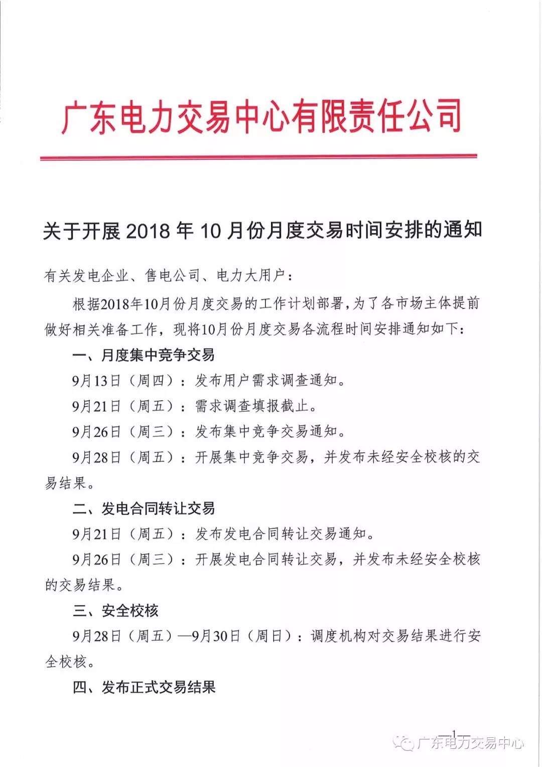 通知 | 廣東關(guān)于開展2018年10月份月度交易時間安排的通知