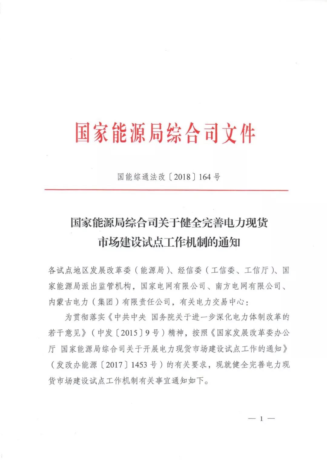 國(guó)家能源局綜合司關(guān)于健全完善電力現(xiàn)貨市場(chǎng)建設(shè)試點(diǎn)工作機(jī)制的通知