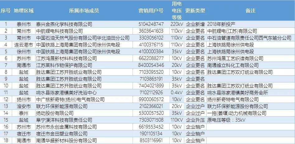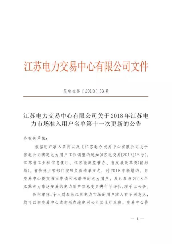關(guān)于2018年江蘇電力市場準入用戶名單第十一次更新的公告