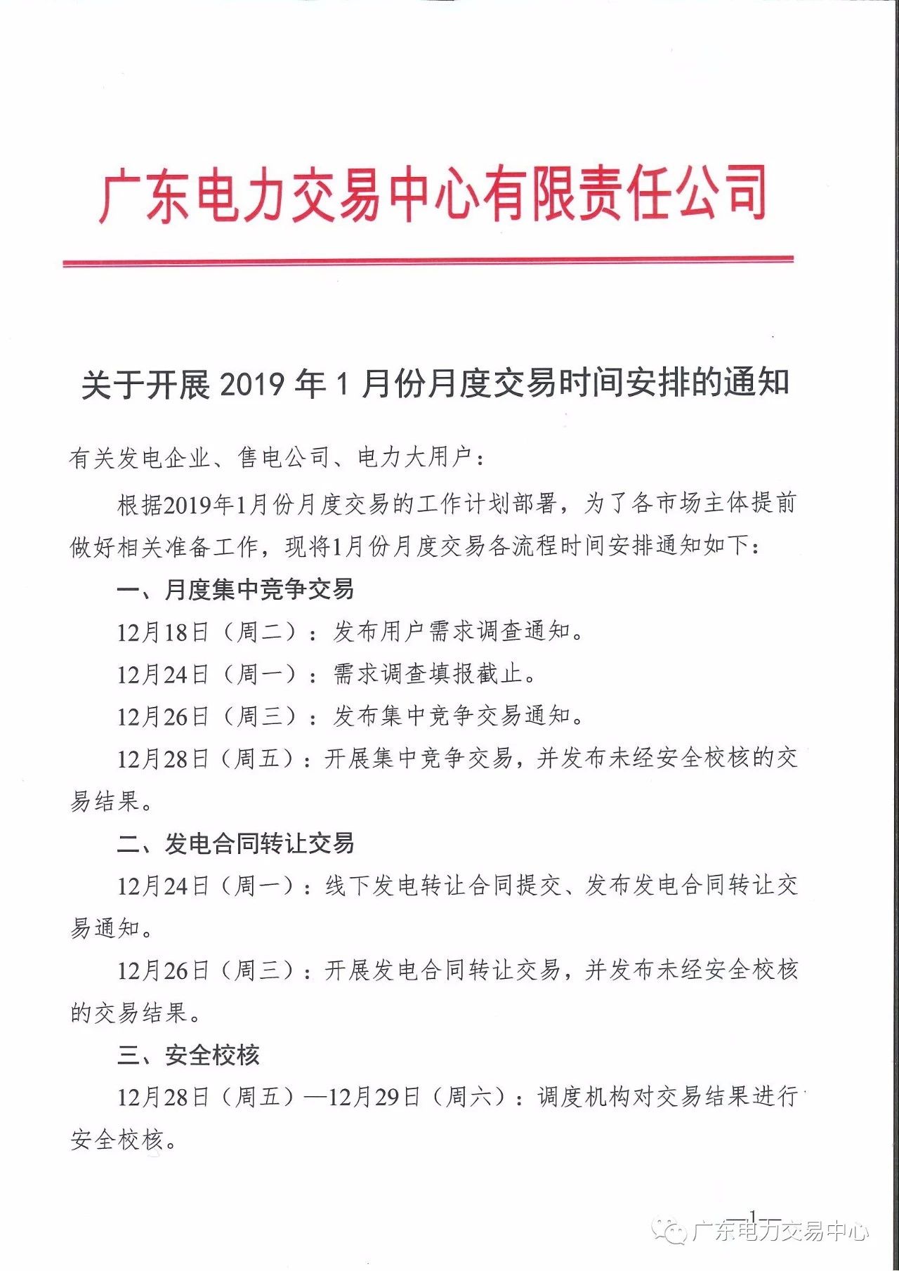 廣東電力交易中心日前發(fā)布了《關(guān)于開展2019年1月份月度交易時間安排的通知》