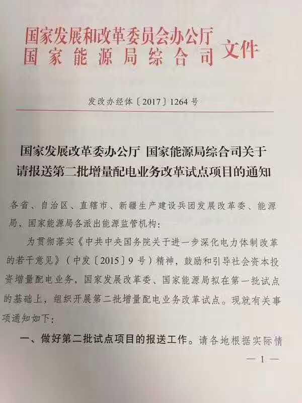 國家發(fā)展改革委辦公廳、國家能源局綜合司于7月20日聯(lián)合發(fā)布了《關(guān)于請報送第二批增量配電業(yè)務(wù)改革試點項目的通知》,通知中稱,擬在第一批試點的基礎(chǔ)上,組織開展第二批增量配電業(yè)務(wù)改革試點。做好第二批試點項目