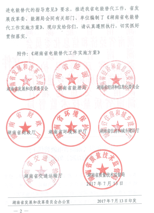 由湖南省發(fā)改委、湖南省能源局、湖南省經(jīng)信委、湖南省財(cái)政廳、湖南省環(huán)境保護(hù)廳、湖南省住房和城鄉(xiāng)建設(shè)廳、湖南省交通運(yùn)輸廳、湖南省質(zhì)量技術(shù)監(jiān)督局八部委聯(lián)合下發(fā)的《湖南省電能替代工作實(shí)施方案》印發(fā)。目標(biāo):