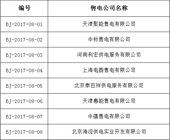 公示期間,任何單位和個人如有異議,可通過來電、來信、來訪等方式向北京電力交易中心實名反映。本次公示售電公司目錄如下: