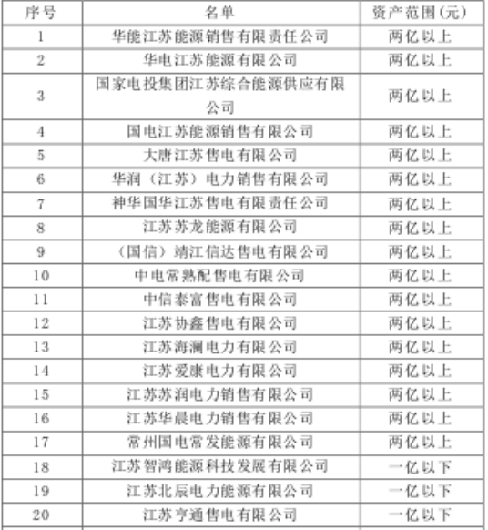 江蘇第一批36家售電公司成功入場!25家資產(chǎn)范圍2億!