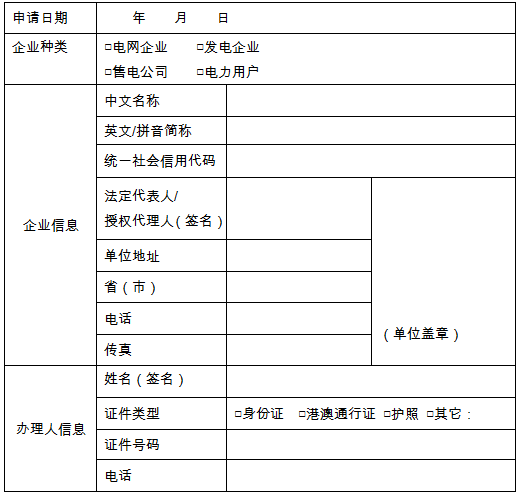 冀北發(fā)布電力市場主體注冊、信息變更、注銷申請書模板