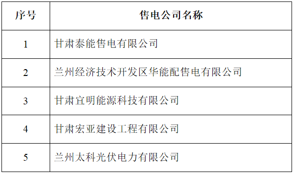甘肅電力交易中心公示5家售電公司相關(guān)信息的公告