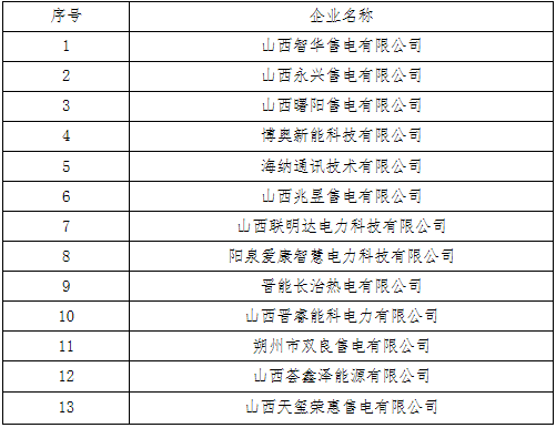 山西新公示13家申請準(zhǔn)入及3家申請注冊信息變更的售電公司