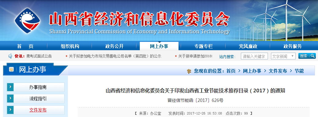 近日,山西省經(jīng)濟和信息化委員會發(fā)布關(guān)于印發(fā)山西省工業(yè)節(jié)能技術(shù)推薦目錄(2017)的通知,全文如下: