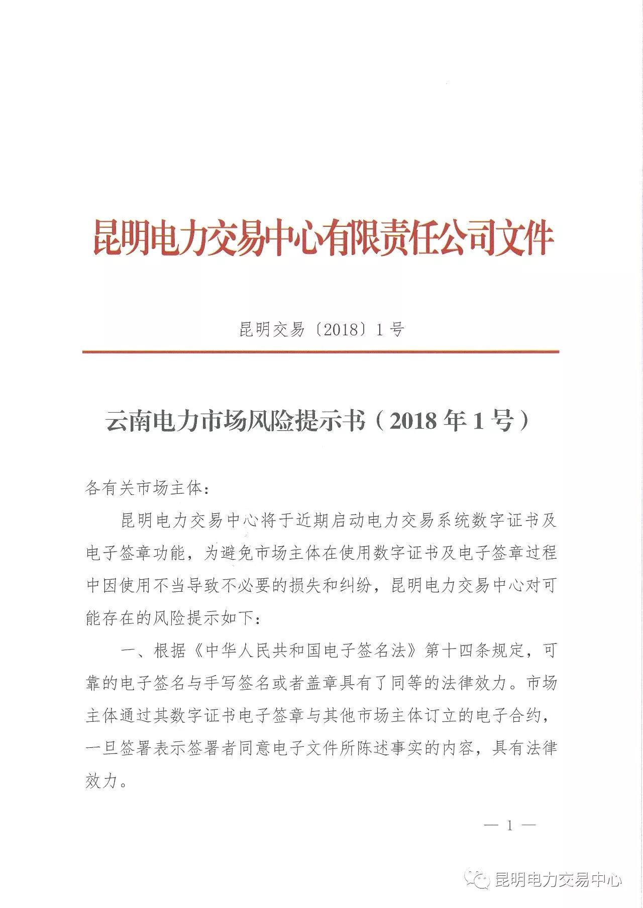云南發(fā)布電力市場(chǎng)風(fēng)險(xiǎn)提示書(shū)(2018年1號(hào))