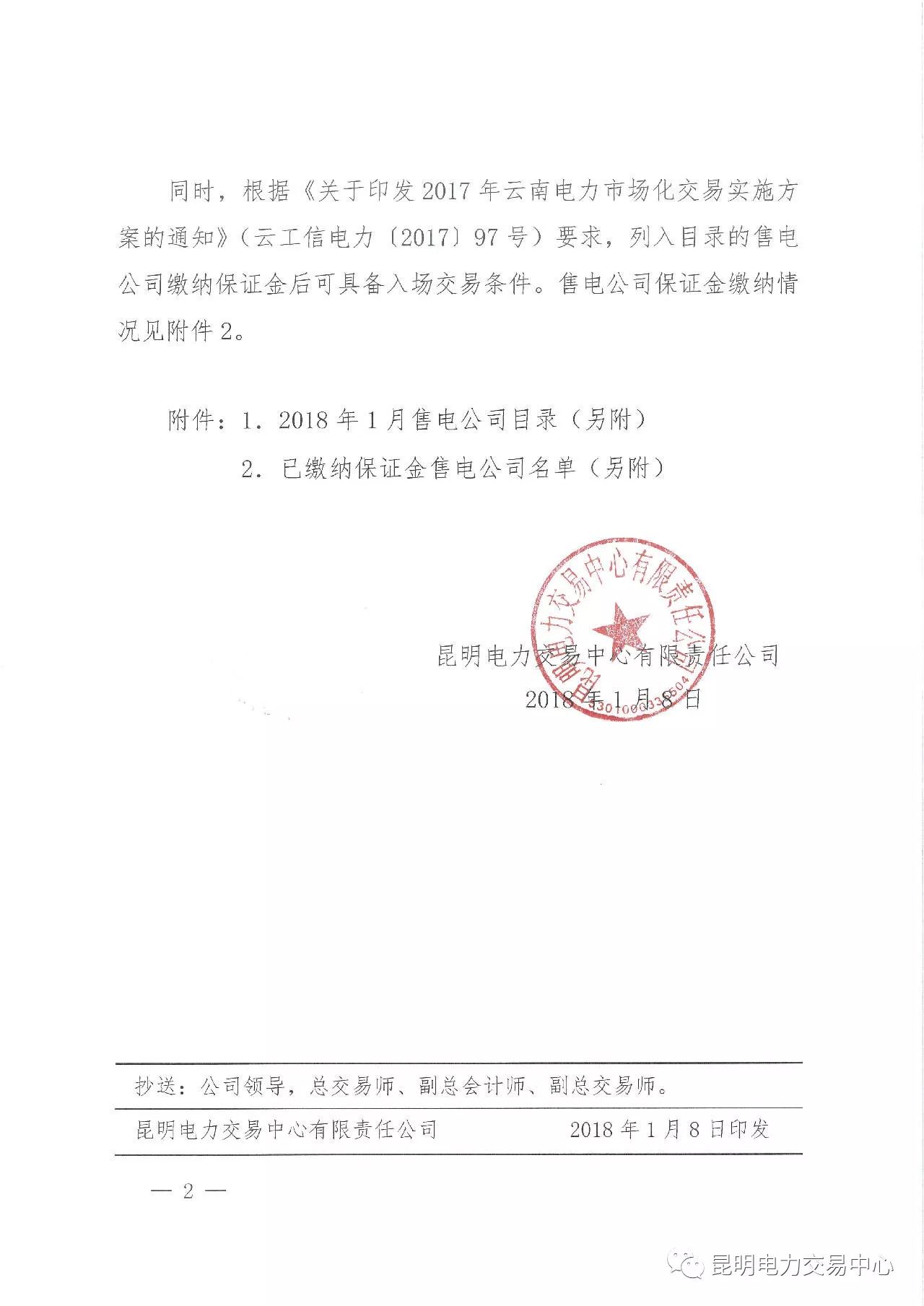 昆明電力交易中心日前公布了《2018年1月售電企業(yè)目錄》,公示期間,因市場主體對云南中泰豐源新能源有限公司有異議,公示不通過,暫不納入