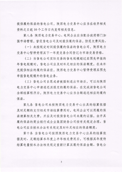 《陜西電力市場(chǎng)售電公司履約保函管理辦法(試行)》的通知