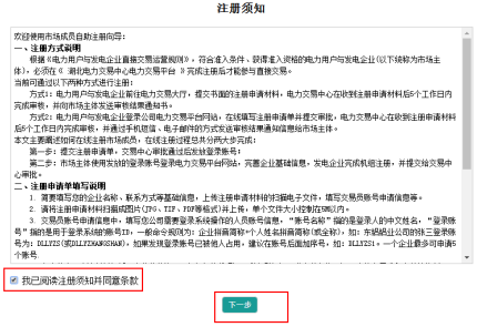 打開注冊(cè)須知后,需完整閱讀平臺(tái)使用協(xié)議后,勾選“我已閱讀注冊(cè)須知并同意條款”,并點(diǎn)擊【下一步】。